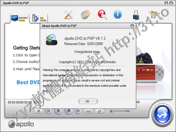 • Apollo DVD To PSP v4.1 英文正式版(將DVD轉換為SONY PSP視頻文件的軟體)